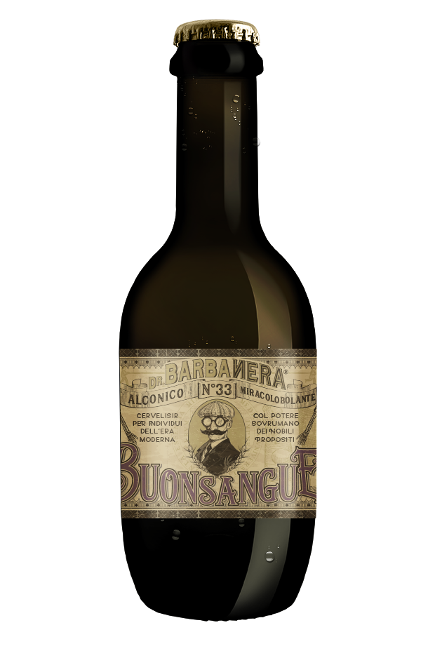 BuonSangue è una birra artigianale ad alta fermentazione prodotta con mosto d'uva. Rinfrescante e sensorialmente complessa. 5,8 gradi, sentori fruttati e schiuma fine. Gli aromi non ne precludono la freschezza. È la terza della Serie Alchemica, la nuova serie del Magnifico che scava tra il passato delle sperimentazioni su esseri umani.
